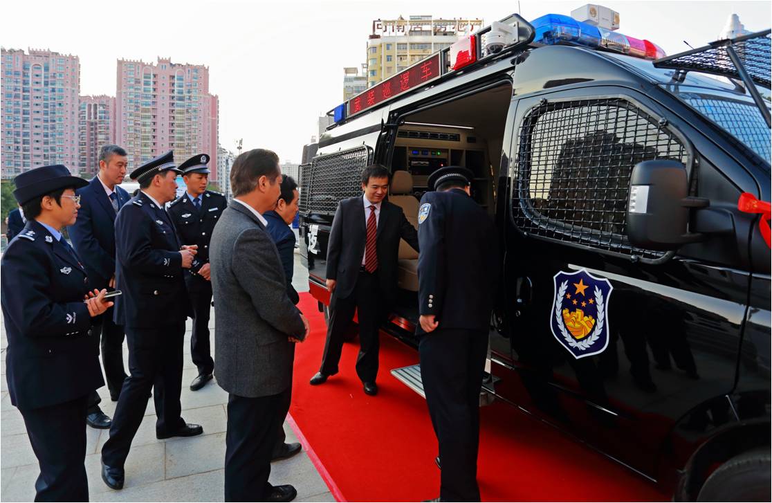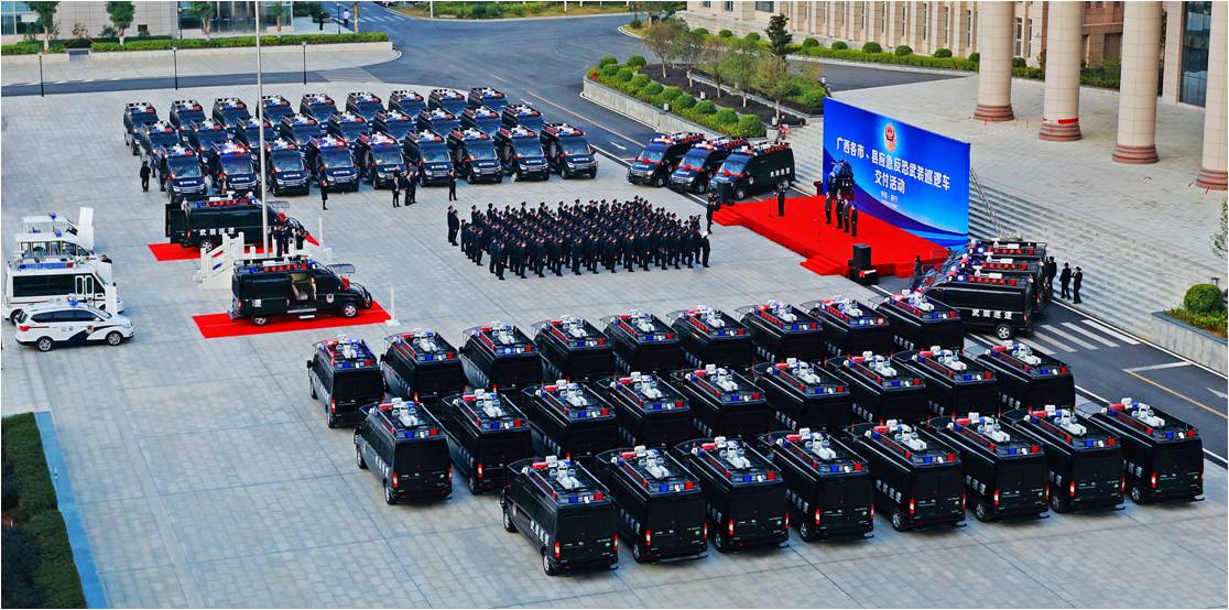 這批反恐武裝巡邏車是公司根據(jù)廣西全區(qū)反恐實(shí)戰(zhàn)需求和區(qū)域特點(diǎn),研發(fā)生產(chǎn)的全新一代五菱V80特種專用警務(wù)產(chǎn)品。每輛應(yīng)急反恐武裝巡邏車能滿足5-6個(gè)警員攜帶裝備執(zhí)行出警和應(yīng)急處突任務(wù),整車安裝有防護(hù)網(wǎng),前撞擊桿,后防護(hù)桿,可清除一般性障礙,撞擊作案車輛,具有強(qiáng)悍的防暴制暴和突擊能力及穩(wěn)固的自我防護(hù)能力等特點(diǎn)。同時(shí),該車還配備有全方位星光級(jí)夜視車載智能監(jiān)控系統(tǒng)、升降式強(qiáng)光照明燈、公安網(wǎng)移動(dòng)上網(wǎng)本及多形態(tài)電源供給系統(tǒng),可與各級(jí)公安監(jiān)控指揮中心實(shí)時(shí)聯(lián)絡(luò),即使在極端惡劣條件下,均可啟動(dòng)全方位監(jiān)控及語(yǔ)音通訊功能,通過