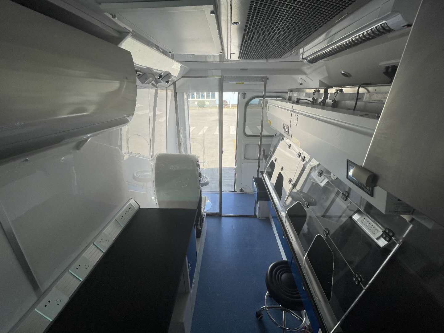 五菱發(fā)熱診療哨點車內設視頻監(jiān)控系統(tǒng)、4G視頻會議終端系統(tǒng)等信息化系統(tǒng),遠程了解現(xiàn)場情況的同時,可滿足遠程視頻會議需求以及遠程診療的需要。此外,該車能有效防止病毒外泄,收集處理醫(yī)療廢棄物、廢氣、廢水等,保證車內醫(yī)護人員及周邊檢測人員的健康與安全。